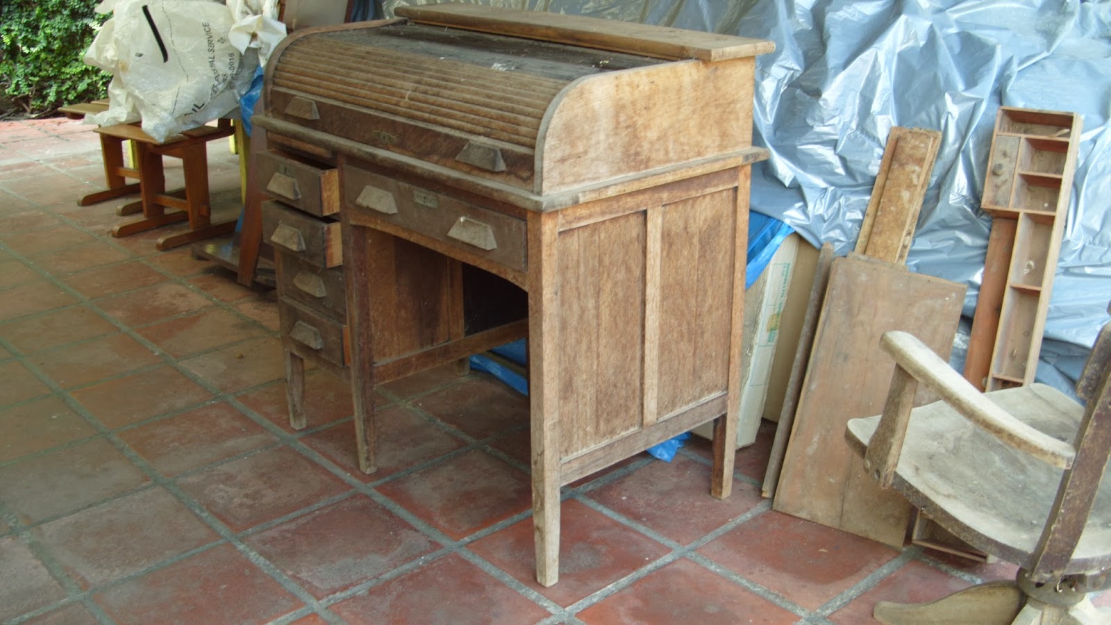 Em algumas partes a cobertura ,feita de um material especial que parece papelão ,estava totalmente destruída .Foi preciso arrancar toda a traseira e uma lateral e colocar material novo.As alças de couro para carregar o baú também não existiam mais.